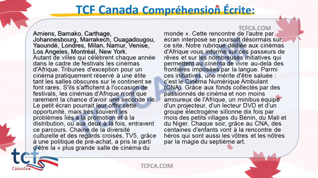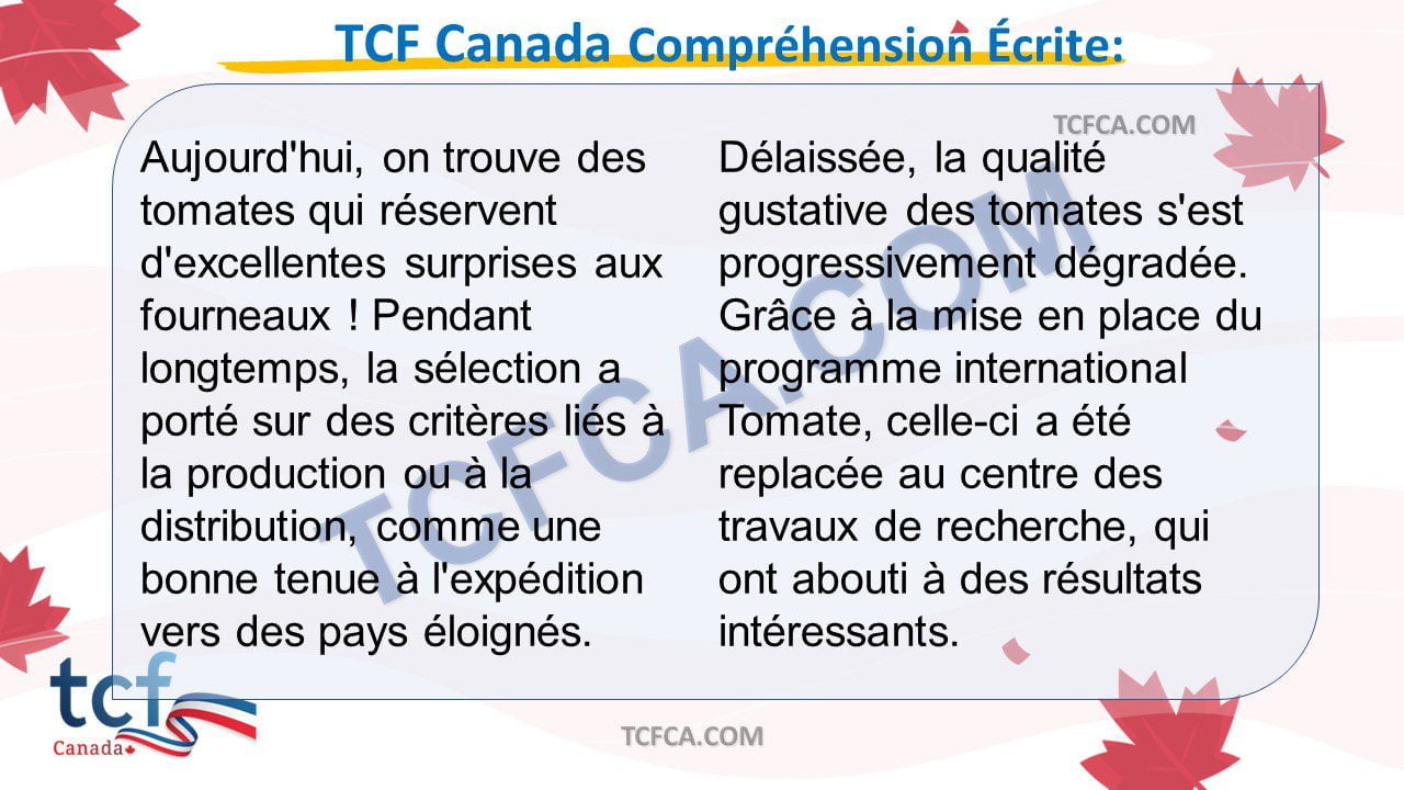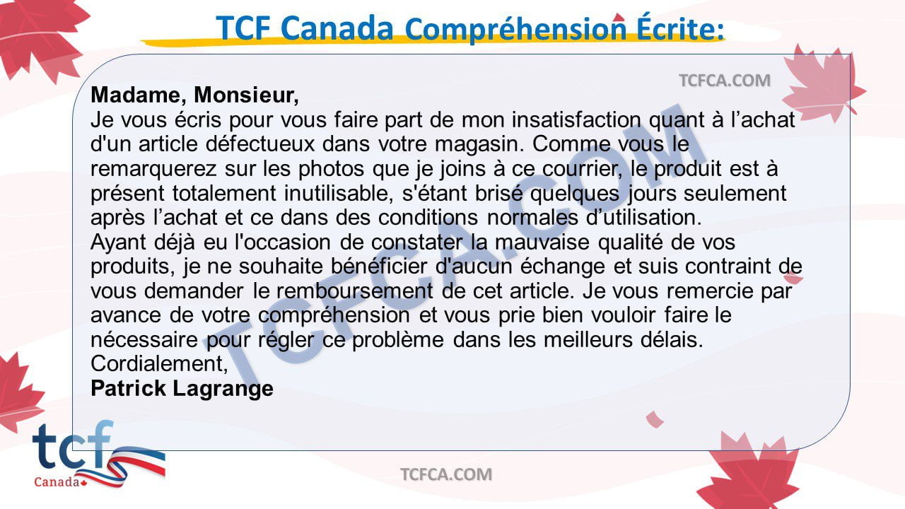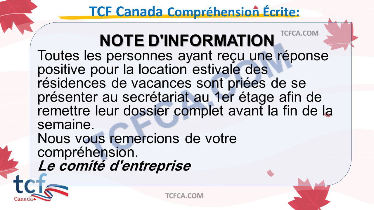 TCF Canada Compréhension Écrite: