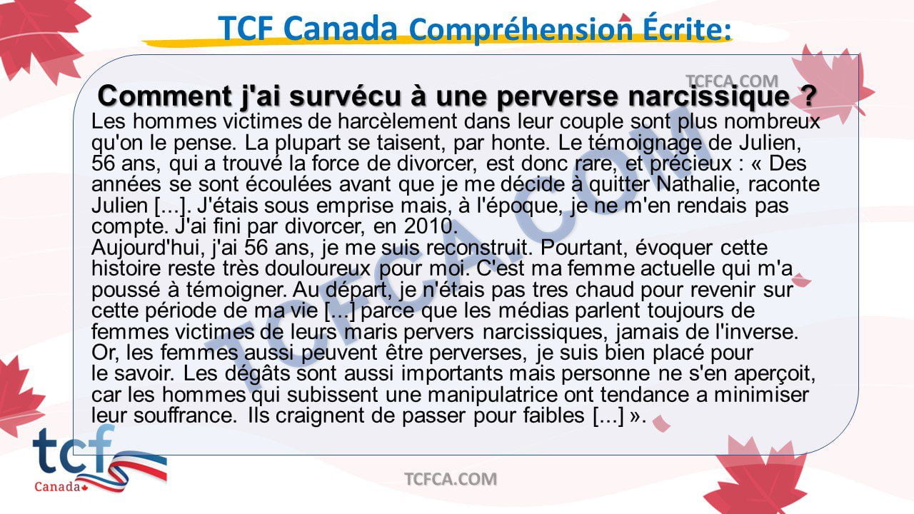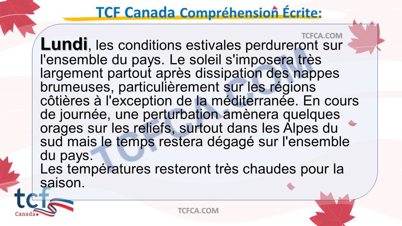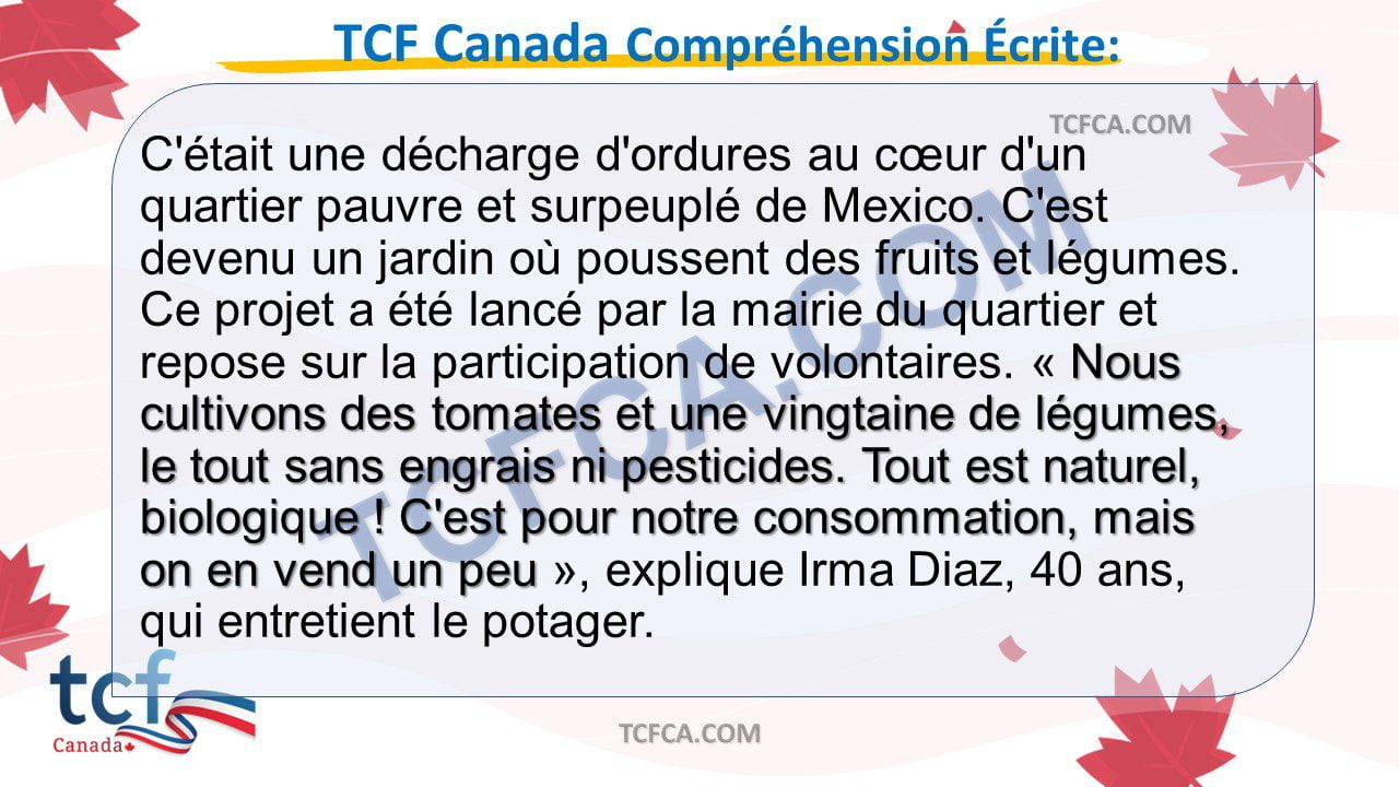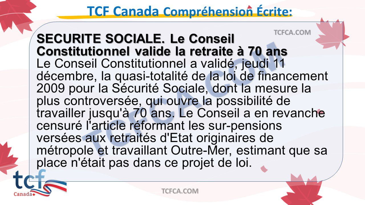 TCF Canada Compréhension Écrite: